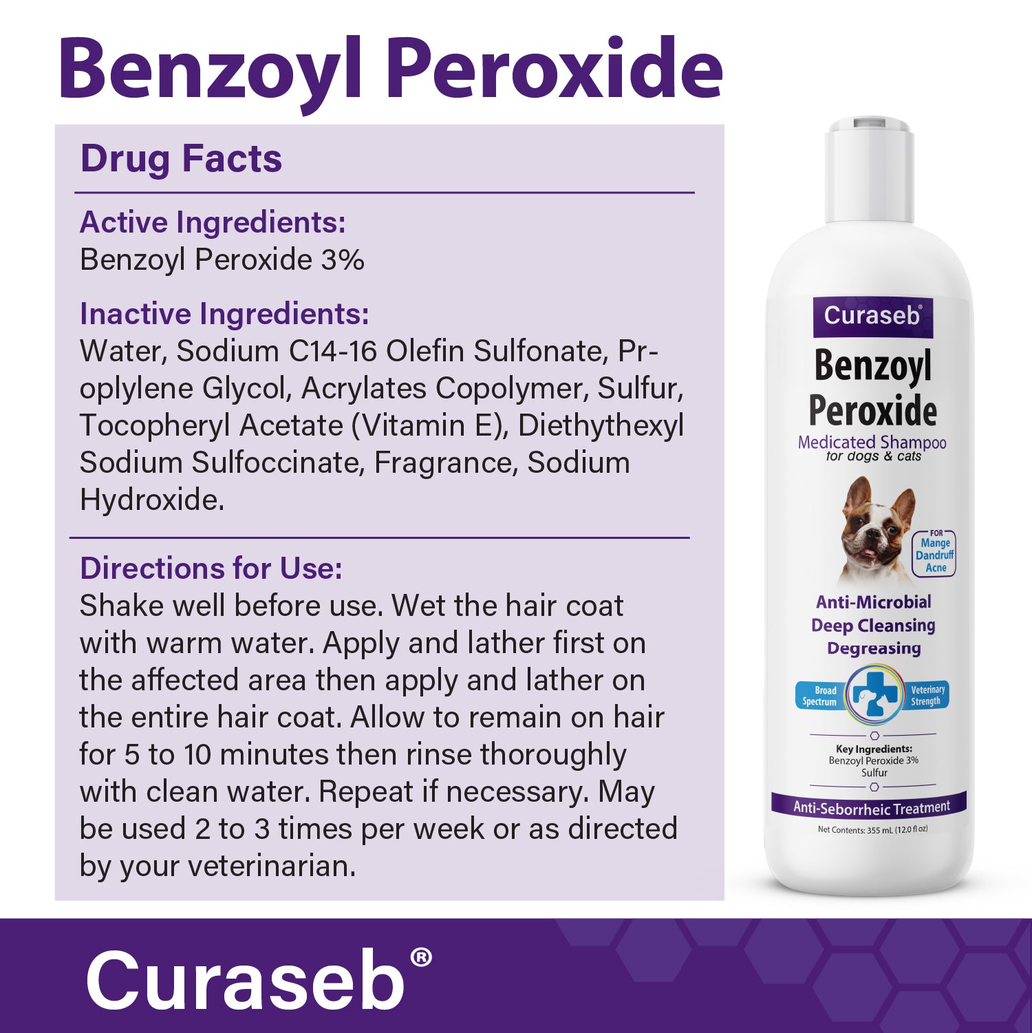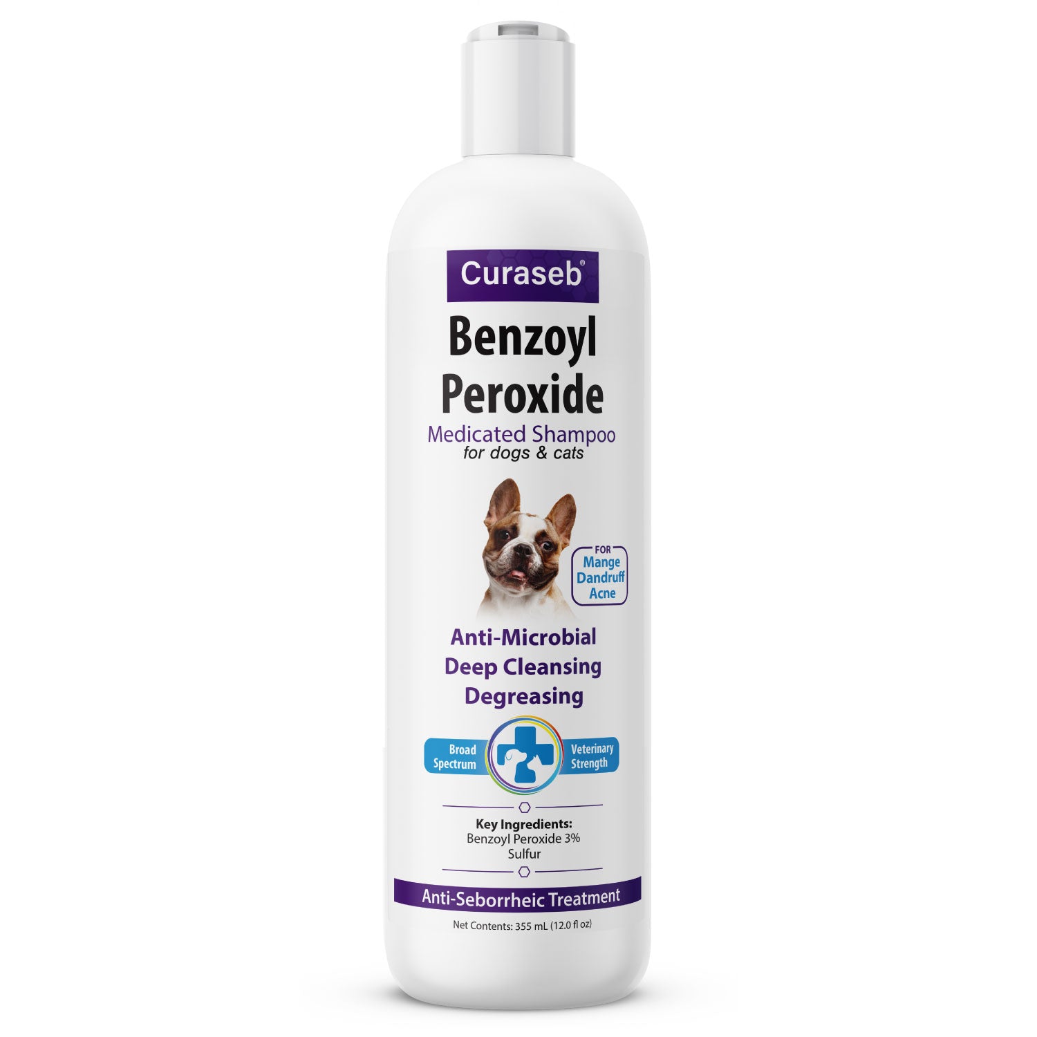 - Benzoyl Peroxide & Micronized Sulfur Combine to Create a Super Effective Veterinary Strength Shampoo that Deep Cleans and Degreases